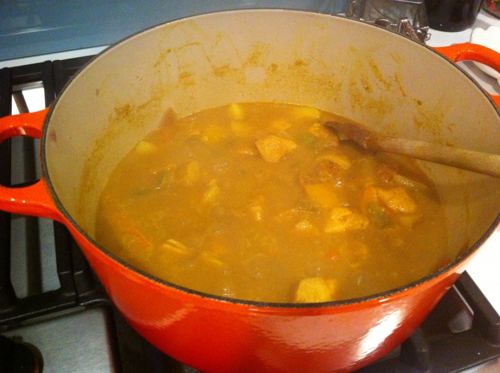 It was hard to pick a recipe to try out when I was reading Phan Food, but the combination of flavors in Colonel Forbin’s Caribbean Chicken Roti sounded to tasty to pass up. The great thing about this recipe was it required very little preparation. Once everything was cut to size, I threw it into a pot and left it to cook – and then cool – for awhile. This recipe also has perfect lot portability; you can precook it at home and reheat it on lot, then serve with tortillas and mango chutney for a perfect lot bite.