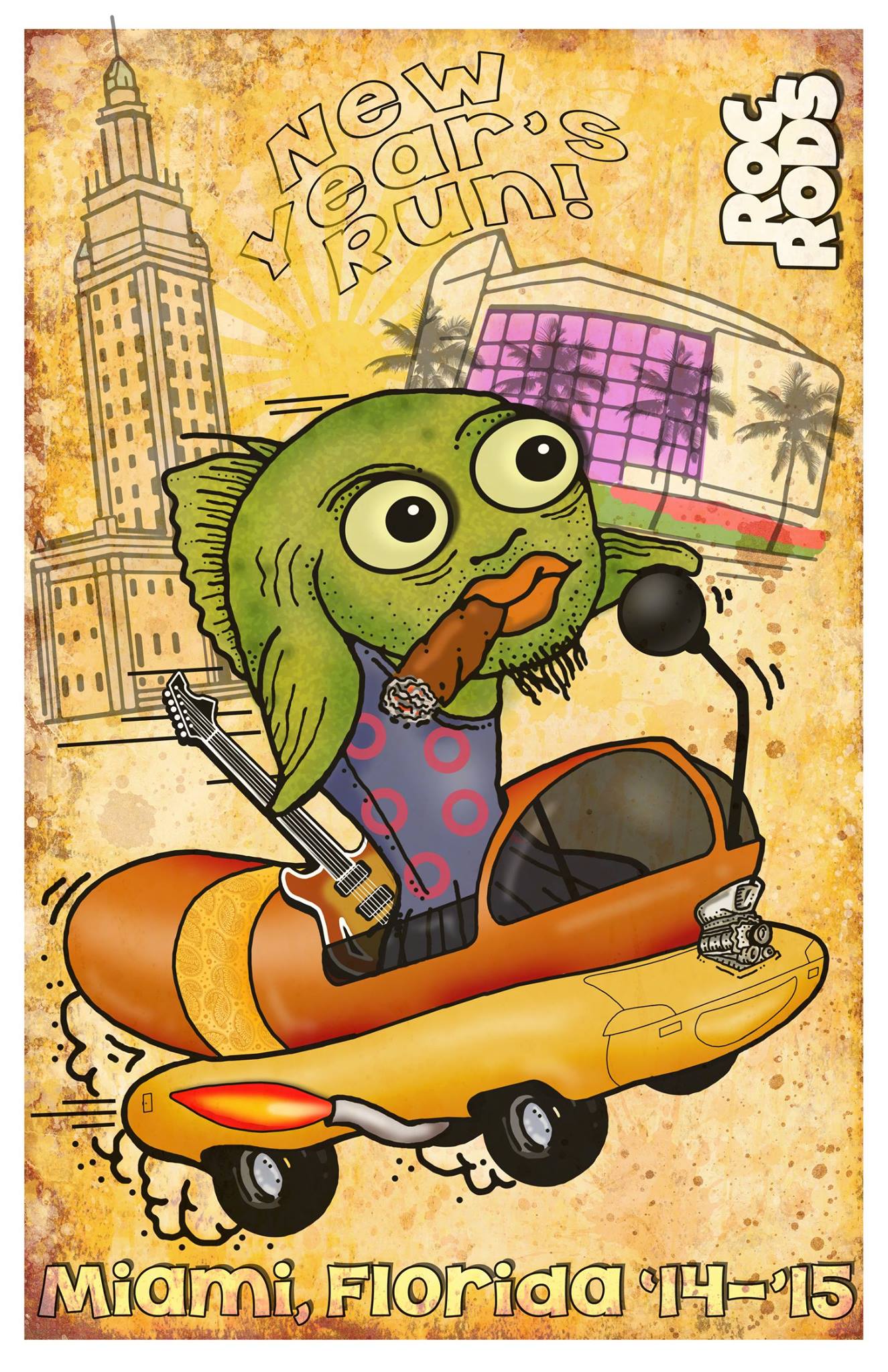 In 2008 & 09, he was also selected along with 35 artists (in each city) to be a part of the Orlando and Miami Gibson “GUITARTOWNS“, having painted original artwork on two 10ft tall Gibson guitar replicas.